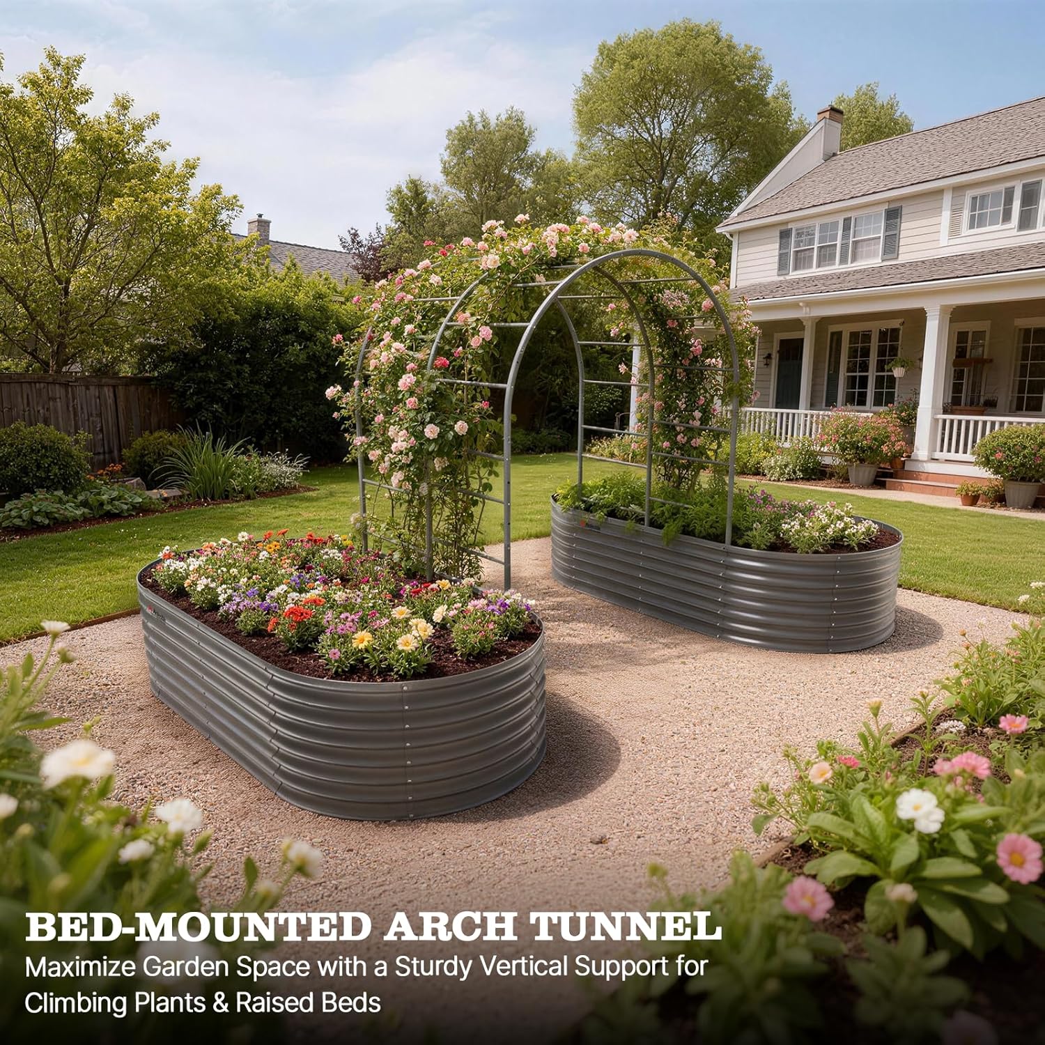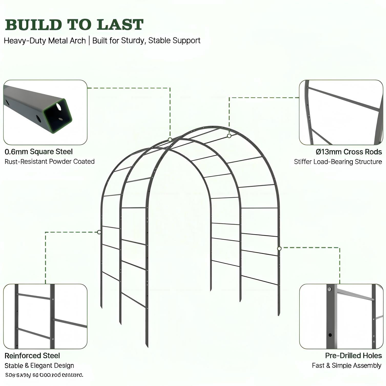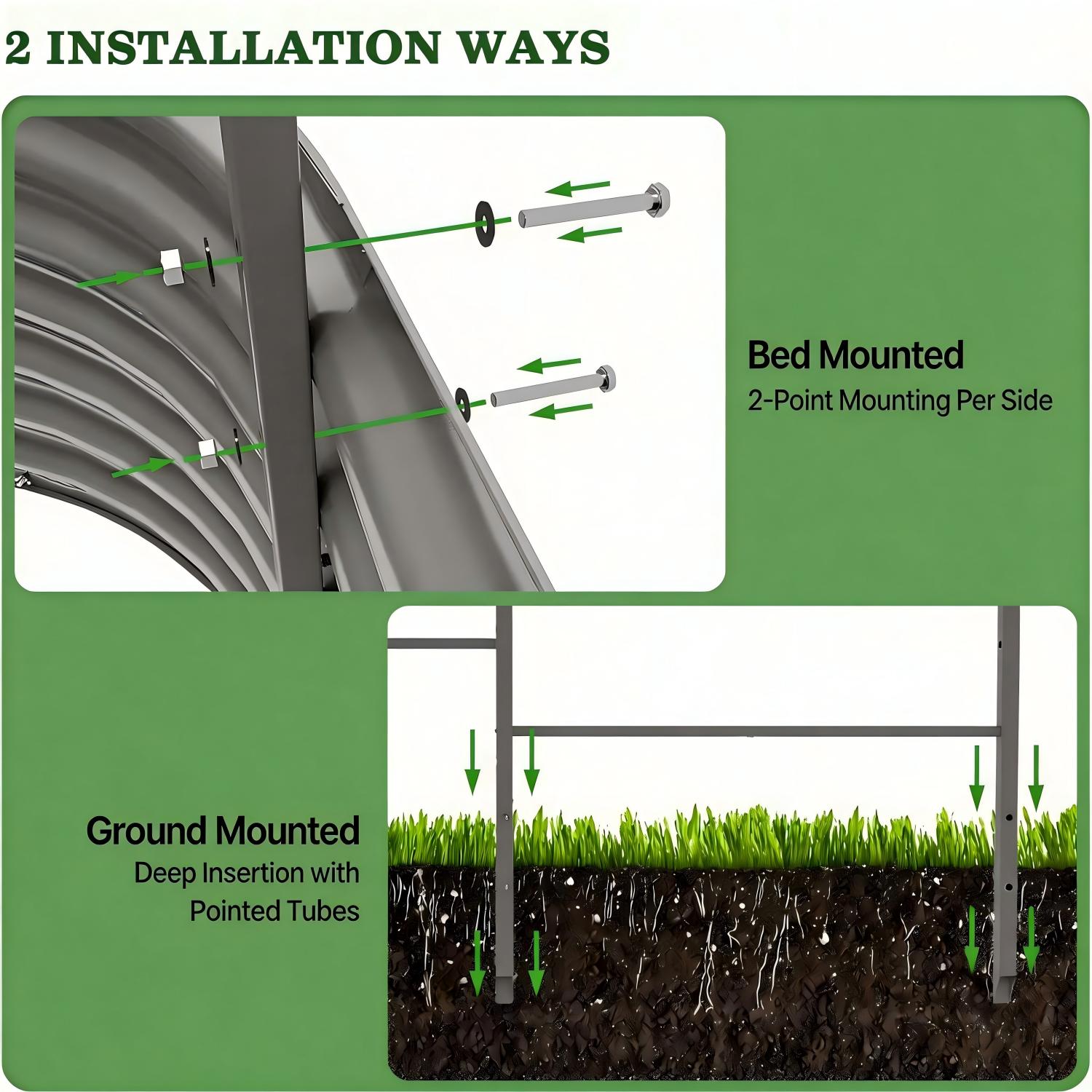 Specially designed to mount directly onto raised garden beds, creating a stable arch structure that integrates seamlessly with your planting setup.