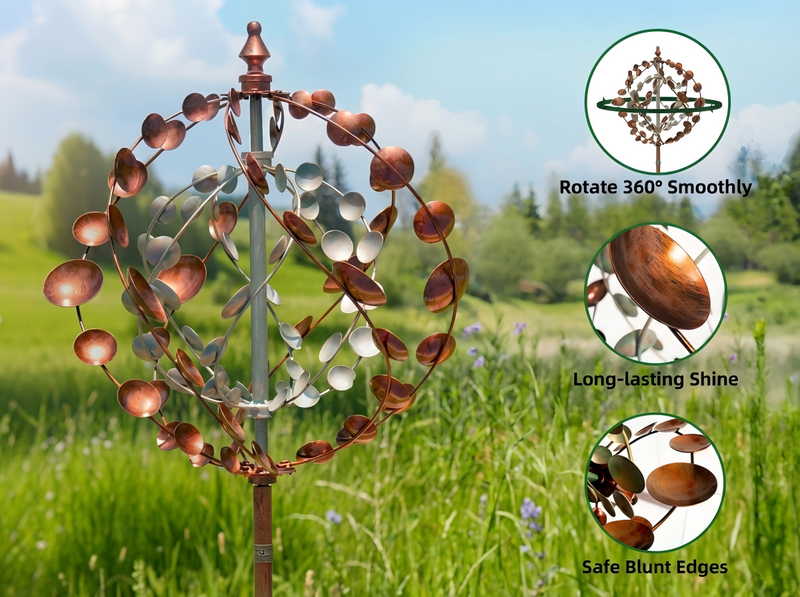 77" Tall Metal Kinetic Wind Spinner for Garden – 3D Lotus Design & 360-Degree Rotation