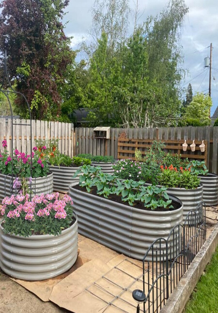 Anleolife Metal raised garden beds are made of galvanized steel coated with a powder-coating which is durable in all weather conditions. 0.8mm corner panels, 0.6mm side panels make our metal garden beds solid and sturdy to last for many years.