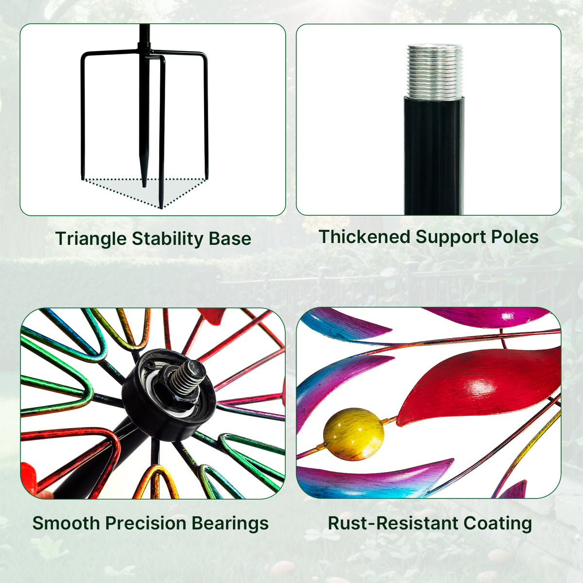 Featuring a vibrant blue flame–inspired double-spinner blade design, it rotates smoothly in the breeze to create a captivating kinetic art display in your garden