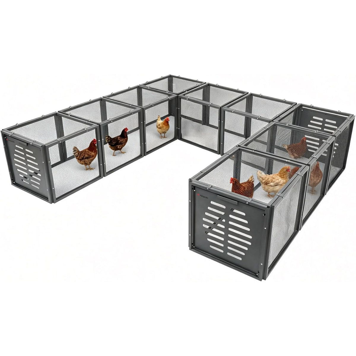 Each tunnel module measures 23.6" × 23.6" × 23.6", creating a spacious pathway that allows chickens to move freely, forage naturally, and stay active.
