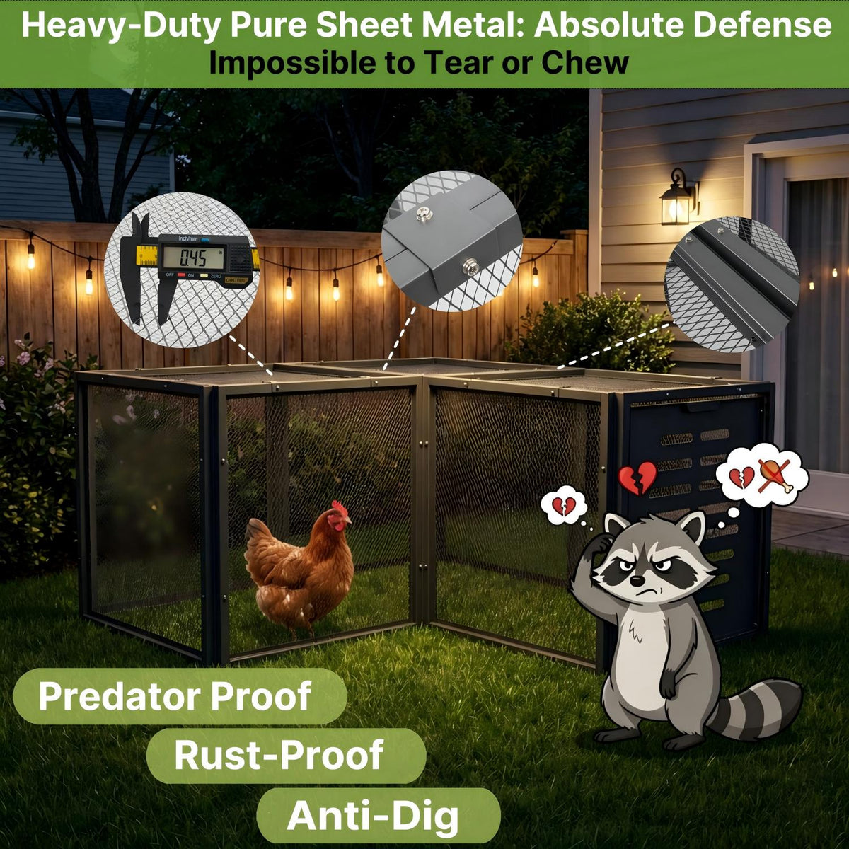 Built with heavy-duty sheet metal and a rust-resistant coating to protect poultry from predators like foxes, raccoons, and stray animals.